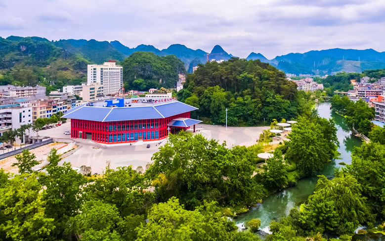 德保芳山文化體育公園范圍包括原九曲橋公園及芳山,位于縣城東部中心城區(qū),由鑒河景觀廊道串連而成,其間有山地、河流等各種豐富的自然景觀。公園總占地面積16.99公頃,其中綠化面積15.69公頃,水體面積3.361公頃,景區(qū)內旅游資源豐富,這里空地清新,有蜿蜒清澈的河流、郁郁蔥蔥的草木,宛如世外桃源;這里歌圩之風盛行,民族風情濃郁,節(jié)慶活動豐富多彩,是一個集濱河觀光、文化體驗、休閑度假、健身娛樂、生態(tài)科普于一體的多功能旅游景區(qū)。