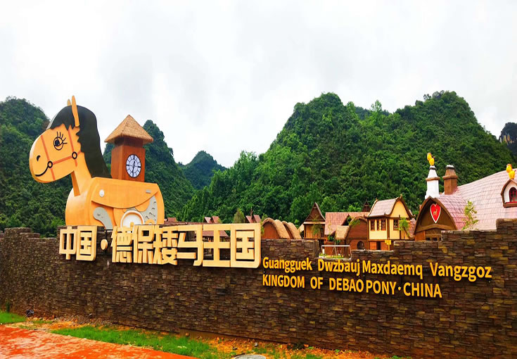 德保矮馬王國景區(qū)位于德保縣燕峒鄉(xiāng)興旺村坡寧屯(吉星巖AAAA景區(qū)出口處),一期開發(fā)建筑面積400畝,建設內容有矮馬王國競技場、萌寵部落、矮馬小鎮(zhèn)、矮馬游樂園、矮馬劇場、木屋酒店、帳篷酒店等項目,涵蓋動漫賽事、親子游樂、互動體驗、教育科普、文化演藝等于一體。矮馬王國景區(qū)從德保矮馬“萌”的核心特色出發(fā),將德保矮馬IP化,以親子卡通化的形象表現(xiàn)手法,創(chuàng)意“矮馬保保”的主人公形象,將德保矮馬打造成為華南萌主;以故事場景化的主題敘事手法,構建“矮馬保保”和他的小伙伴們的王國樂園,打造以德保矮馬為IP的主題家庭親子旅游目的地。讓孩子置身于童話故事中,兼具開發(fā)智力、認識自然的同時,還能兼顧大人玩耍與視覺審美,是全家人親子互動、休閑娛樂的地方。