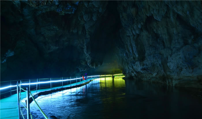 通靈大峽谷,國(guó)家AAAA級(jí)旅游景區(qū),位于中越邊境,是一個(gè)長(zhǎng)方形全封閉式的峽谷,長(zhǎng)約1000米、寬200多米。峽谷中有一個(gè)高100米、寬60米的寬敞的溶洞,洞壁及洞頂布滿各種造型奇異的鐘乳石。整個(gè)大峽谷由念八峽、通靈峽、古勞峽、新靈峽、新橋峽共五個(gè)峽谷組成。