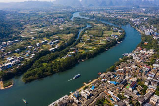 大圩古鎮(zhèn)在漓江東岸,父子巖東南,磨盤山北,距桂林23公里水程。史載,古鎮(zhèn)始建于北宋初年,中興于明清,鼎盛于民國時期,距今已有千年歷史,遠在600年前,大圩以其“大”,成為廣西四大圩鎮(zhèn)之最。