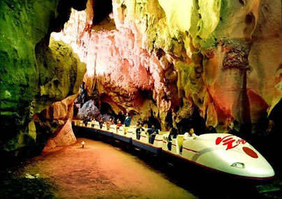 冠巖地下河游覽區(qū)是桂林有名的旅游溶洞之一,本世紀九十年代初,桂林華之冠旅游開發(fā)有限公司對冠巖進行了全方位科學(xué)合理性的開發(fā),按高起點、高標(biāo)準設(shè)計建立了多種游覽方式,洞內(nèi)共有5種游覽方式:步行(行程約1000米);乘坐觀光滑道(洞內(nèi)滑道來回約500米);乘觀光電梯(電梯高約36米,亞洲觀光第一梯),乘坐洞內(nèi)小火車(小火車長約30米,可載客108人,行程約500米);在地下河浮橋中漫步(行程約500米,洞中有世界巖洞第一瀑,地下河瀑布)。多種現(xiàn)代游覽設(shè)施與洞內(nèi)景色相輔相成,使冠巖成為國內(nèi)獨具特色和韻味的水陸空游覽洞穴。