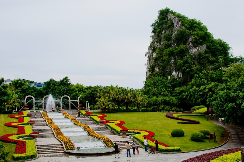 山系 疊彩區(qū)境內(nèi)有堯山、疊彩山、伏波山、虞山等山;有伏龍洲、南洲、螞蝗洲等島嶼;有試劍石、木龍洞、韶音洞、風(fēng)洞、仙鶴洞、瞻鶴洞、還珠洞等奇石異洞。