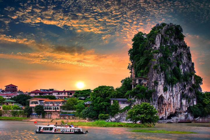 虞山景區(qū)位于桂林城北,瀕臨漓江,因華夏始祖之一的虞帝(即舜帝)南巡曾到此地,使虞山而得名。景區(qū)內(nèi)虞山、皇澤潭、韶音洞素有仙山、仙河、仙洞之名,其中“舜洞熏風(fēng)”為桂林著名老八景之一。