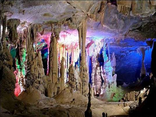 此洞分為4個大殿堂,輝煌瑰麗,多姿多彩,讓人看了留連忘返。其中最為壯觀的是那個100多米高,幾百米寬、1000多米長的大殿堂內(nèi),幾十個70~80米高、3~5米直徑的鐘乳石柱,構(gòu)成龐大的石塔群,挺拔高聳,雄偉壯麗,讓人驚嘆不已。加上洞中霧氣繚繞,變幻無窮,更使這個巍巍景觀顯得詭秘多姿。這些巨大的鐘乳石塔,是經(jīng)過幾億年巖溶發(fā)育的結(jié)晶,其中最大的石筍需十人方能合圍,最高的石柱達39米,實屬“天下之最”。