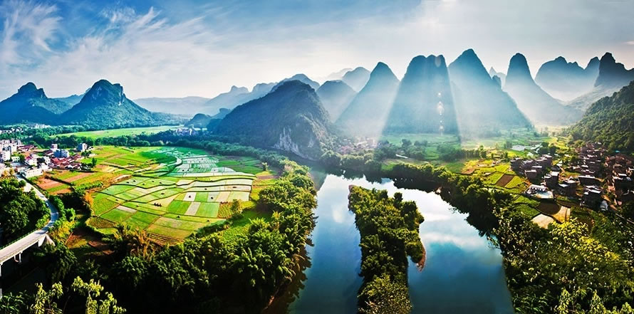 古龍河景區(qū),位于廣西宜州祥貝鄉(xiāng)古龍村,這里是廣西最后的山水凈土,有“世外仙境”的美譽(yù),是國(guó)家AAA級(jí)景區(qū)、中國(guó)最美意境旅游景區(qū)。古龍河山清水秀,竹翠峰美,游客乘坐竹筏順?biāo),可以觀賞到中國(guó)最大的壯族水車,體驗(yàn)到魚鷹捕魚、江中漁韻的詩情畫意,欣賞到壯族古老的圖騰巖畫,感受到最有民俗特色的壯族情歌。在當(dāng)?shù)亓鱾髦?ldquo;桂林山水甲天下,古龍山水賽桂林”的說法。