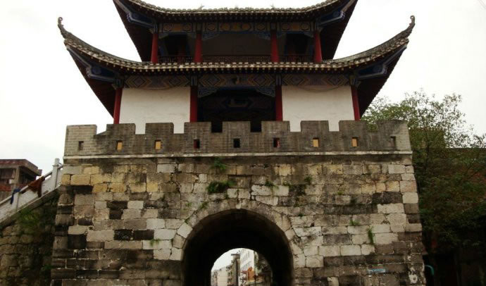 四牌樓,位于宜州區(qū)一中東側(cè),建于乾隆二十五年,時(shí)稱“會(huì)魁樓”,又稱“四牌樓”。此樓位于十字路口,形成東西南北四個(gè)門洞,內(nèi)外相通。四牌樓樓高三層,一樓全用大型細(xì)鑿條石砌成,呈四方形,工藝精巧。邊長(zhǎng)11.5米,四面拱門各高3.9米,寬3.5米。二三樓為木質(zhì)結(jié)構(gòu)的重檐樓閣,紅漆圓柱,飛彩流丹,古樸莊重。“文革”中二三樓被拆毀,只存有一樓拱洞石門,樓上建筑及額匾碑刻已不復(fù)存在。