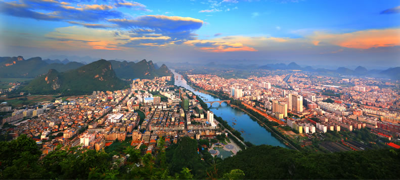 劉三姐故里景區(qū)位于廣西宜州城北,國(guó)家AAAA級(jí)景區(qū)。整個(gè)景區(qū)由貫通城區(qū)的龍江河段與劉三姐鎮(zhèn)下枧河段交匯構(gòu)成,形成“天人合一”的天下奇觀。景區(qū)以龍江河、下枧河為旅游帶,包括游客集散中心、流河寨、壯古佬等游覽區(qū)。流河寨為景區(qū)核心區(qū),寨中至今仍保留有劉三姐、阿牛哥當(dāng)年居住過的房屋,有壯寨門、壯族圖騰、農(nóng)家勞作工具、茶樓、踏歌橋、歌仙廟等建筑。寨中可觀秀才與三姐斗歌、賞歌王現(xiàn)場(chǎng)贈(zèng)歌,可體驗(yàn)劉三姐拋繡球游戲等。是一個(gè)集自然景觀和民俗風(fēng)情的旅游勝地。