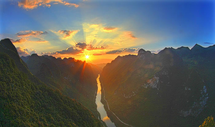 旅游資源。天峨是國(guó)家銅鼓文化生態(tài)保護(hù)實(shí)驗(yàn)區(qū)的核心區(qū)(天峨、南丹、東蘭)縣份之一,共有壯族螞拐節(jié)、壯族銅鼓習(xí)俗兩項(xiàng)國(guó)家非物質(zhì)文化遺產(chǎn),有壯族八仙、壯族螞拐舞、壯族筒噔藝術(shù)等5項(xiàng)自治區(qū)非物質(zhì)文化遺產(chǎn)。境內(nèi)有國(guó)家4A級(jí)景區(qū)1個(gè)(龍灘大峽谷國(guó)家森林公園)、國(guó)家3A級(jí)景區(qū)2個(gè)(龍灘水電站、川洞河燕子湖景區(qū)),自治區(qū)生態(tài)旅游示范區(qū)1個(gè),四星級(jí)鄉(xiāng)村旅游區(qū)5家(山旮旯生態(tài)農(nóng)業(yè)旅游區(qū)、六美生態(tài)農(nóng)業(yè)休閑區(qū)、川洞河燕子湖鄉(xiāng)村旅游區(qū)、雙龍瀑布·金花茶園、板凳老家鄉(xiāng)村旅游區(qū)),星級(jí)農(nóng)家樂19家,星級(jí)酒店4家,基本形成“一山(大山)一洞(川洞)一峽谷(龍灘大峽谷),一河(紅水河)一湖(龍灘天湖)一電站(龍灘水電站),一花(油桐花)一橋(仙人橋)一文化(螞拐文化)”的旅游發(fā)展格局,逐步成為生態(tài)休閑旅游的理想圣地。