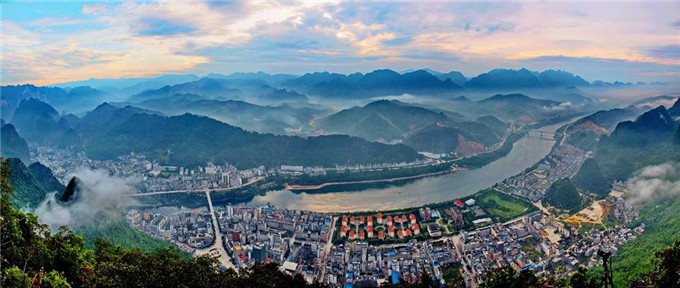 地形地貌 天峨縣地處廣西丘陵與云貴高原的過渡地帶,屬鳳凰山脈和東鳳嶺山脈交錯(cuò)區(qū)。群峰林立,溝壑縱橫,地勢(shì)以中山為主。主要山峰有高樓山、三匹虎、大山、交連嶺等,其中:高樓山為全縣高山之首,海拔1419米。此外海拔1000米以上山脈有311座。