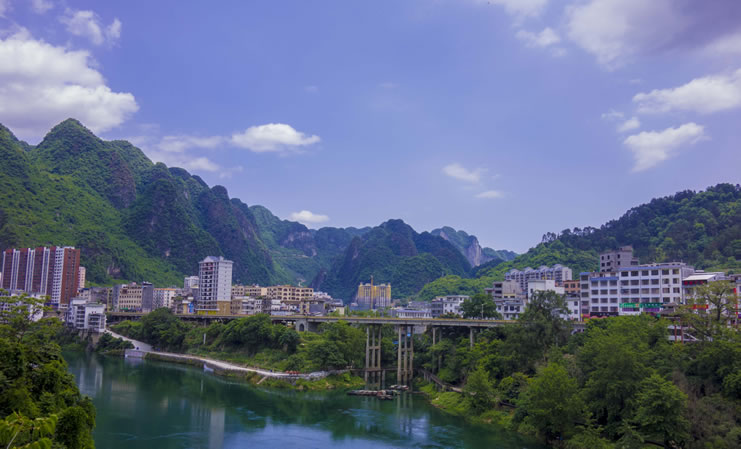 天峨縣,隸屬廣西壯族自治區(qū)河池市,位于廣西壯族自治區(qū)西北部,紅水河上游。縣境東西長(zhǎng)約77千米,南北寬約95千米?偯娣e3196平方千米。天峨縣是國(guó)家、廣西林業(yè)重點(diǎn)縣,全縣森林面積22.9萬公頃,森林覆蓋率達(dá)82.6%,素有“森林王國(guó)”“綠色寶庫”之稱,野生植動(dòng)物資源種類繁多;紅水河流經(jīng)縣境112千米,水資源占紅水河流域總蘊(yùn)藏量45%。全縣轄2鎮(zhèn)7鄉(xiāng),其中瑤族鄉(xiāng)1個(gè),居住著壯、漢、瑤、侗、苗、毛南、布依、仫佬、水等20個(gè)民族。天峨縣常住人口為143155人。