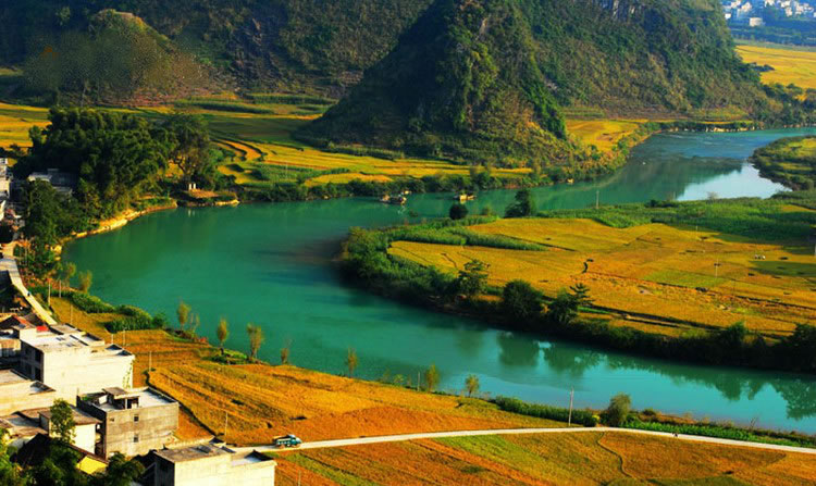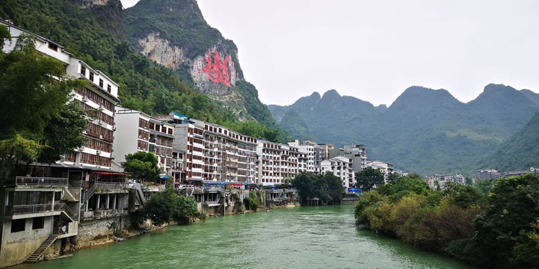 甲篆村在巴馬縣西北19千米處,甲篆鄉(xiāng)政府駐地,巴馬至鳳山公路經(jīng)此,盤(pán)陽(yáng)河從距村址約2千米烈屯漠齋山的百鳥(niǎo)洞奔流而出,河灣斷續(xù),秀水瀠洄,兩岸奇峰峻巒,村屯錯(cuò)落。甲篆村美景曾令到此探索壽鄉(xiāng)之秘的國(guó)外專家考察隊(duì)和區(qū)內(nèi)外到此體驗(yàn)生活的文藝家們嘆為觀止,因而素享“小桂林”之美稱。坡開(kāi)村還盛產(chǎn)油魚(yú),這種體肥肉嫩身骨細(xì)軟,煎時(shí)香油四溢。