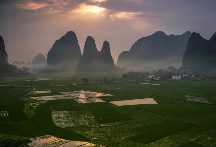 十里畫廊景區(qū)位于縣城西北18千米,國道323線及桂梧高速公路旁,以公安鎮(zhèn)荷塘村為中心,面積約36平方千米。景觀有荷塘群峰、雙元群峰、公婆山、陽元石(朝天蠟燭)、觀音山、寶塔山等。景區(qū)延綿十?dāng)?shù)里,風(fēng)景如畫,因而取名為十里畫廊。 廣西賀州市鐘山縣的“公婆山”位于十里畫廊景區(qū)內(nèi),屬喀斯特巖溶地貌峰林平原區(qū)域。“公婆山”是一座天然形成的“人”字形小石山,此山高約30余米、底寬10多米,呈三角形尖頂狀,極像一男一女面對面站立相擁在一起。當(dāng)?shù)亓鱾髦粋(gè)小伙子金水與仙女巧蘭千古不朽的愛情故事,公婆山就是他們的化身。
