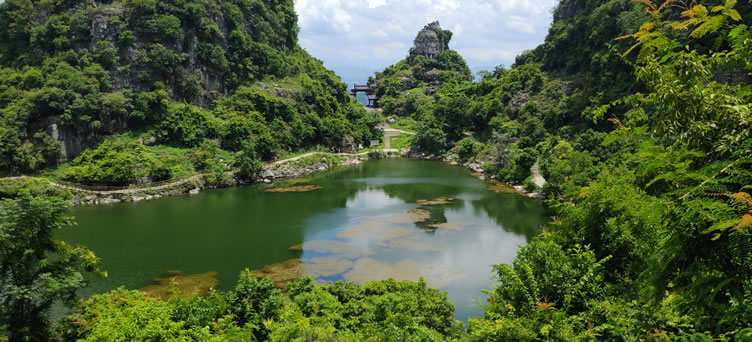 “八仙天池”(又稱:“八仙山”、“八仙寨”),是全國三個天池之一,1988年經(jīng)自治人民政府批準,列為自治區(qū)級風景名勝開發(fā)保護區(qū)。距武宣鎮(zhèn)6千米的大山峽村八仙山。山體呈圓形,面積2平方千米,山體313米高程,四周環(huán)列八座山峰,在高出地面127米的山腰中有一池天然碧水,似“八仙托玉盤”,故稱:“八仙天池”。天池長約150米,寬100米,水深10米。又名:“八仙潭、龍?zhí)、仙湖、神秘?rdquo;。八仙山四周空蕩,雨不盈,旱不闊,水清無塵,味甘可飲。