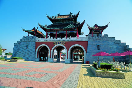 該區(qū)的建筑風(fēng)格充滿了中國古代特色,有長(zhǎng)城式的城墻及亭臺(tái)樓閣等建筑造型。中國城內(nèi)主要的游樂設(shè)施有: