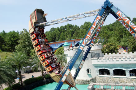 歐洲區(qū)有園內(nèi)最具刺激、最令人心跳的游樂設(shè)施——“圣戰(zhàn)騎兵”。