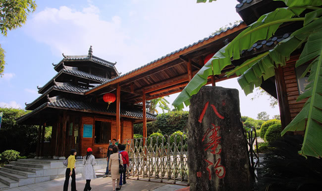 “九寨溝太遠,八寨溝就在身邊。”隨著這句廣告詞風靡廣西,欽北區(qū)八寨溝旅游風景區(qū)吸引了越來越多的八方游客前來觀光旅游。 八寨溝旅游區(qū)位于欽州市西北五十多公里的十萬大山腹地的貴臺鎮(zhèn)境內(nèi),總面積三萬多畝。八寨溝是亞熱帶雨林、竹林,山澗、瀑布清澈生動,大小泉潭分布有致,砂頁巖形態(tài)奇特,物種植被豐富,是集探險、獵奇、游泳、休閑度假、避暑、觀光的旅游勝地。