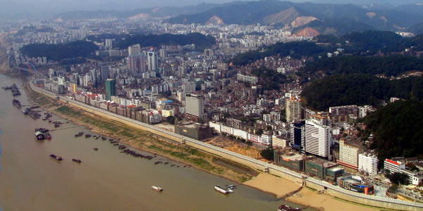 梧州市位于珠江流域西江水系中下游—潯江(西江上游)與桂江交匯處。西江水系梧州市以上流域,集水面積32.97萬平方千米。流域上游西面為云貴高原,北面有大苗山、貓兒山、越城嶺,南面是十萬大山、六萬大山、大容山等。西江水系匯集江河溪流700多條和廣西壯族自治區(qū)85%以上水量流經(jīng)梧州市。整個(gè)流域西北高,東南低,流域內(nèi)水流匯集西江注入珠江,流域內(nèi)河流密度較大,廣西壯族自治區(qū)境內(nèi)集水面積50平方千米以上河流784條,平均河流密度為每平方千米0.14千米。全市流域面積大于10平方千米河流有420條。其中,流域面積10平方千米~50平方千米河流有283條;流域面積50平方千米~100平方千米河流有65條;流域面積100平方千米~1000平方千米河流有55條;流域面積1000平方千米~1萬平方千米河流有13條;流域面積大于1萬平方千米河流有4條。中間低而多河流,潯江、桂江相匯成西江,集廣西壯族自治區(qū)眾多河流水量,河流水面積占總面積9.28%。梧州市流域面積大于10平方千米河流有7條,其中100平方千米~1000平方千米河流有1條。黔江在桂平市三角咀郁江匯入處以下河段稱潯江,流經(jīng)桂平市和平南縣、藤縣、蒼梧縣,至梧州市區(qū)桂江匯入處止。干流長172千米,蒼梧縣及梧州市區(qū)境內(nèi)18千米,河段平均坡降0.0097%。區(qū)間流域面積20236平方千米。其中,廣東省境內(nèi)1594平方千米,在廣西壯族自治區(qū)境內(nèi)18642平方千米。