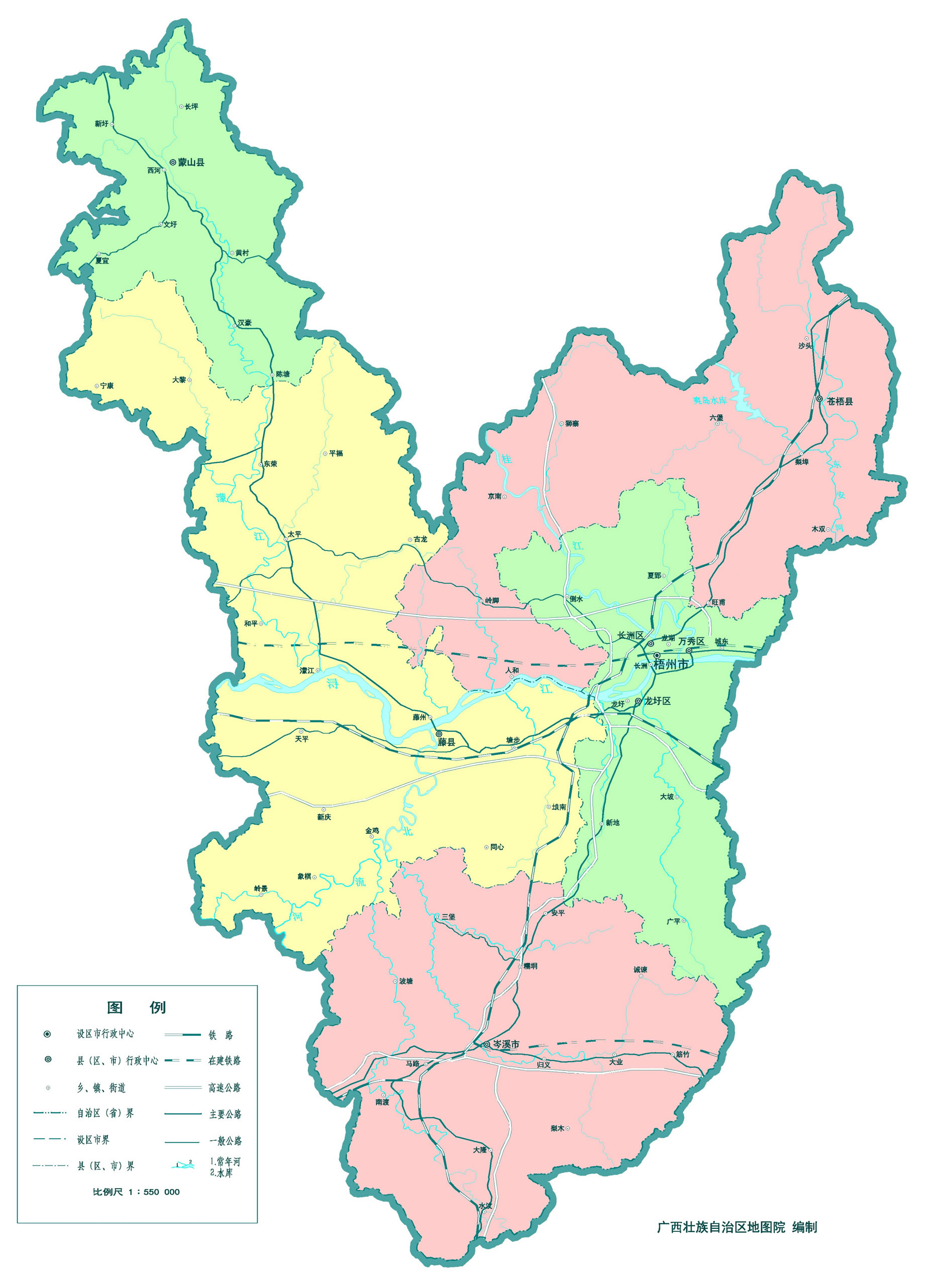 梧州市轄3個(gè)市轄區(qū)、3個(gè)縣、代管1個(gè)縣級市: