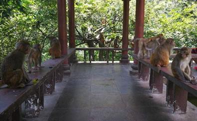 獼猴園始建于20世紀(jì)30年代,原為中西上式建筑,包括會議室、招待所等。解放后,此處一度作為貴陽市人民政府的臨時(shí)辦公場所。1957年黔靈公園建園,該地即劃歸公園管理。1985年,政府投投資對此處進(jìn)行了整修,拆除原招待所,配以長廊及江南亭榭,以供游人休息及欣賞。1991年,公園在該景區(qū)建成城市公園野生獼猴觀賞園。爾后,公園在此進(jìn)行野生獼猴散養(yǎng)的科研,經(jīng)過十余載的努力,獼猴從當(dāng)初的20余只發(fā)展到五大群,300余只。到2010年,這一數(shù)量增加到了500只以上,最大的猴群獼猴數(shù)量超過200只。