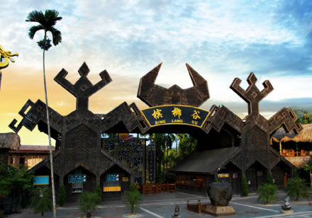 甘什嶺檳榔谷原生態(tài)黎苗文化旅游區(qū)自然景觀包括:黎族田園風(fēng)光、海南島面積最大、最古老的擯柳園、多種亞熱帶古樹、山泉溪水成多級(jí)瀑布從園中穿流而形成的怪石群。人文景觀有:“奧雅宮”(黎族頭人住的房);“隆閨屋”(黎族姑娘居住和娛樂的場所)等。來海南旅游觀光客可參與黎家古老的弓騖射擊,品嘗黎家竹筒飯和黎家山茶,觀賞多姿多彩的黎族歌舞。