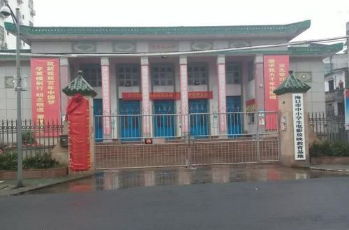 中山紀(jì)念堂為紀(jì)念民主革命先行者孫中山先生而建,位于中山街道辦事處文明西路19號(hào),民國(guó)十五年(1926年)建成,是全國(guó)最早的孫中山紀(jì)念堂。1964年重建,占地面積1500平方米,建筑面積700平方米,建筑布局為坐北朝南,呈方形,前有庭院,左右兩側(cè)各有花池1個(gè),沿7級(jí)混凝土臺(tái)階拾級(jí)而上到達(dá)主體建筑。紀(jì)念堂為綠色琉璃瓦,堂頂飛檐,正面堂檐橫匾鐫刻堂名,整體結(jié)構(gòu)為中西結(jié)合風(fēng)格,是?谑、海南行政區(qū)承辦各種重要活動(dòng)的場(chǎng)所,?谑械谝粚萌嗣翊泶髸(huì)在此召開,現(xiàn)為?谑星嗌倌晁枷氲赖陆逃娪胺庞郴亍