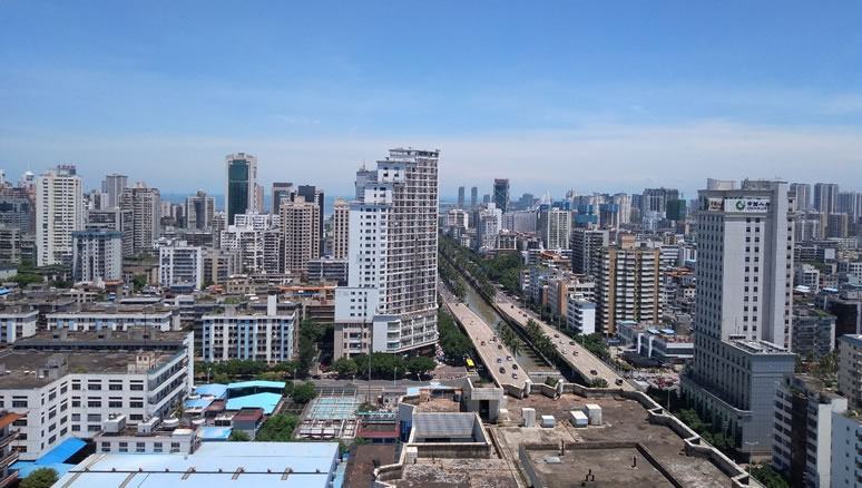 位置境域 龍華區(qū)地處?谑形鞅辈,東鄰美蘭區(qū)、瓊山區(qū),南依定安縣,西接秀英區(qū),北臨瓊州海峽,轄區(qū)東西最大距離14.4千米,南北最大距離36.9千米,總面積300.6平方千米。其中陸地285.35平方千米,占總面積的94.9%;水域15.25平方千米,占總面積的5.1%。