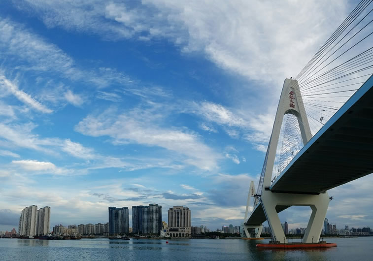 水文 龍華區(qū)有水域面積15.25平方千米,其中河流面積4.7平方千米,水庫(kù)面積1.61平方千米,水塘面積5.52平方千米,溝渠面積1.18平方千米,灘涂2.24平方千米等。境內(nèi)有南渡江、美舍河、南大河、新舊溝和昌旺溪等江河溝溪。海南島最長(zhǎng)的河流南渡江干流長(zhǎng)度333.8千米,流域面積7063平方千米,從定安縣定城鎮(zhèn)流入龍華區(qū)新坡鎮(zhèn)到龍泉鎮(zhèn),南渡江在龍華區(qū)段長(zhǎng)20千米,寬度最大有800米、最窄有300米;美舍河發(fā)源于永興鎮(zhèn),河長(zhǎng)有27.04千米,流域面積52.96平方千米,從秀英區(qū)的五源河及白水塘流入龍華區(qū)城西鎮(zhèn);南大河(龍昆溝、也稱崩潭溝),總長(zhǎng)11.42千米,流域面積為38.02平方千米,從龍華區(qū)城西鎮(zhèn)流入大同街道到濱海街道;新舊溝為南渡江支流,總長(zhǎng)3.5千米,最寬300米,最窄50米,從瓊山區(qū)龍?zhí)伶?zhèn)流入龍華區(qū)龍泉鎮(zhèn);昌旺溪總長(zhǎng)35.5千米,流域面積121.6平方千米,從秀英區(qū)藍(lán)山南藍(lán)泉流入龍華區(qū)的遵譚鎮(zhèn)昌旺水庫(kù)。