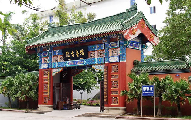 瓊臺書院位于府城中山路8號,相傳是后人為紀念海南第一才子、明朝大學(xué)士丘濬而建。始建于清康熙四十四年(1705年)據(jù)傳由于丘濬號瓊臺,人稱瓊臺先生,故書院由此得名。 書院現(xiàn)今是瓊臺師范學(xué)院的校址,其主樓奎星樓高二層,綠瓦、紅廊、白墻,是一座具有民族特色的磚木結(jié)構(gòu)建筑,至今保存完好。樓內(nèi)雕梁畫棟,異常別致;樓前綠樹成蔭,環(huán)境秀麗雅靜。著名的粵劇、瓊劇《搜書院》的故事就發(fā)生在此,瓊臺書院隨著《搜書院》而蜚聲海內(nèi)外。