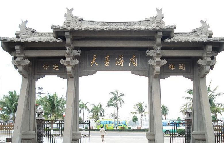 瓊臺福地紀念館位于府城關(guān)帝巷內(nèi)的抱珥山上。在古代人們習(xí)慣尊稱朝廷官衙為“臺”,故這里稱“瓊臺”。 瓊臺福地的說法由來已久。觀象家曾說,華夏大陸的陽剛紫氣,越海潛入南方,首先聚集于瓊臺之下,故稱“福地”。又相傳海南地形極像一只縮頭神龜,宋太祖怕它伸出頭來威脅王朝的統(tǒng)治,便將州城遷來神龜縮頭處,宋神宗熙寧六年(1073年),在瓊州城內(nèi)設(shè)立瓊管安撫司統(tǒng)管全島政務(wù),借此鎮(zhèn)住龜頭。因此,當(dāng)時人們稱此地為瓊臺。 明永樂元年(1403年),海南衛(wèi)指揮使楊義在山頂立“抱珥山”石碑一塊,還在山南樹立“瓊臺福地”石牌坊一座。明弘治初年(1488年),抱珥山被村民挖掉,建關(guān)帝廟一座。清乾隆二十二年(1757年),巡道張介祺順民意修復(fù)瓊臺福地。乾隆四十三年(1778年),時任瓊山知縣汪篆刻“瓊臺”二字勒石為記。后來福地上建起關(guān)帝廟、文昌閣、圣母祠、獻臺、戲臺、石牌坊等,這里成了文人墨客游覽之地、平頭百姓祈求安康之鄉(xiāng)。古代的建筑現(xiàn)已無存,只留有遺址。1999年,瓊山市人民政府在原址上重建了瓊臺福地紀念館,重建后瓊臺福地紀念館的建筑有瓊臺福地坊、福地軒、瓊臺閣、關(guān)帝殿、媽祖廟、觀音廟、影壁、東西廡廊和福泉等。