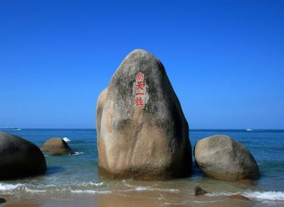 “天涯石”位于景區(qū)西北方,是景區(qū)的標(biāo)志和象征。高10.8米,周長(zhǎng)約66米,獨(dú)占海灣一角,有億萬(wàn)年的歷史。