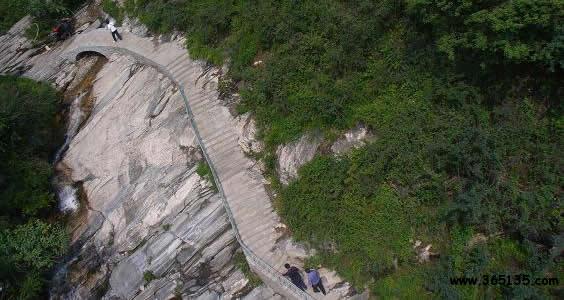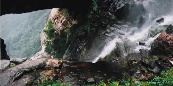 天生橋瀑布群,在阜平縣城西南30多公里處百草坨東側(cè),分布著九個(gè)大瀑布,一座天然形成的橋梁,被專家鑒定為中國北方最大的瀑布群和由變質(zhì)巖形成的中國最大的天生橋。瀑布群集中在與百草坨相連的一條溝谷中,最高的瑤臺瀑布落差112.5米。天生橋是由瀑流沿山谷裂隙沖蝕、崩塌形成的,長27米,寬13米,高13米,與流量最大、落差最高的瑤臺山銀河瀑布組合,形成了一個(gè)天然地質(zhì)奇觀。盛水期飛流直下,如天馬奔騰,驚天動地;枯水期清流潺潺,聲韻清脆,宛如輕音樂協(xié)奏曲。冬季瀑布水凝,生成千千萬萬、大大小小、姿態(tài)各異的冰柱,猶如鬼斧神工造化的玉雕。