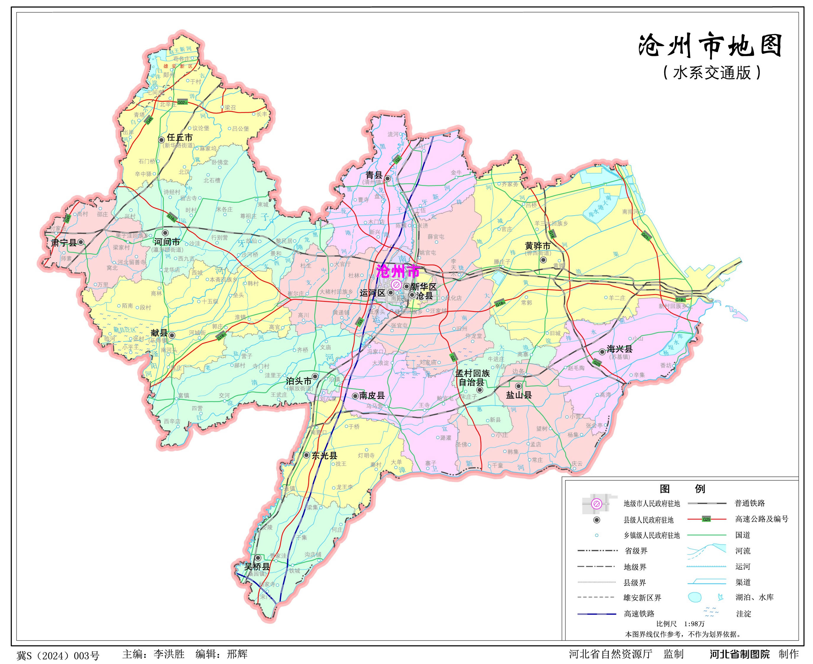 1993年7月,地、市合并為滄州市,市政府駐運(yùn)河區(qū)。
