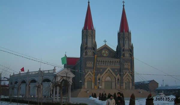 張莊天主教堂,歷史久遠,建筑宏偉,風格別具,中外馳名,有“華北第一堂”之稱。此堂位于縣城東張莊村,分東西兩個大院,占地共315畝。據(jù)歷史資料記載,公元1856年(清咸豐六年)5月,羅馬教廷決定從法國遣使會管理的北京教區(qū)劃一部分歸法國耶穌會管理,在河北東南部成立一個新教區(qū),叫直隸東南教區(qū),并委任上海教區(qū)法國耶穌會會士朗懷仁為第一任代牧主教。1861年3月,朗懷仁主教決定將直隸東南教區(qū)首府遷至獻縣,選定城東一公里處的張家莊(現(xiàn)張莊村)建立總堂,該教區(qū)位于東經(jīng)111度至115度,北緯35度至39度之間,它的北部和東北部是北京教區(qū),西部是直隸西南教區(qū),南部是山東教區(qū),南北約520公里,東西約120公里轄河間、大名、廣平三府,深、冀、景、開、磁五州及三十三個縣城及屬地教務。