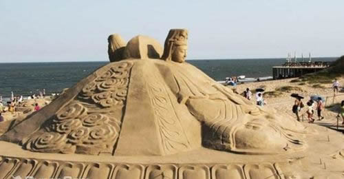 沙雕作品一覽:杏壇春秋、大唐三藏、龜、韓愈、鑒真六渡、老子出關、李白、蓮花公主、清明上河圖、日冕、盛世通寶、萬里長城、炎黃二帝、沙雕大佛、彩雕、沙雕藝術群等。