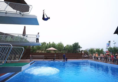新增項目: 高空氣泡跳水。景區(qū)引進德國的凈水裝置和氣泡裝置,通過氣泡裝置降低水密度,減少入水時游客承受的壓力,降低安全風險,設置了距離水面1m、3m、5m三種高度的跳臺。