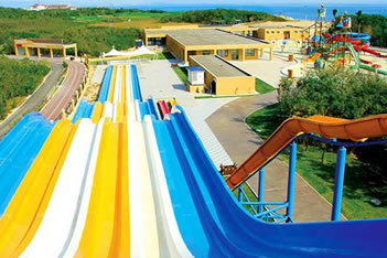 寶貝水城:小孩子的玩水樂園、歡樂的造夢空間。典型設備包括蝴蝶滑梯、青龍滑梯、鱷魚滑梯等設備,還有蝸牛號、椰果派、水風車、向陽花、七彩蘑菇、彩虹門、三色花、鳥語花香、小妖精等可噴水可觀賞的童趣水景。寶貝水城色彩鮮艷,設施眾多,小孩們可以盡情嬉戲玩耍,激發(fā)兒童無窮的想象力和創(chuàng)造力。