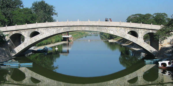 趙州橋座落在河北省南部的洨河上,洨河流經(jīng)趙縣。趙州橋建于隋代(公元581-618年) 大業(yè)年間(公元605-618年),由著名匠師李春設(shè)計和建造,距今已有1400年的歷史,是當(dāng)今世界上現(xiàn)存最早、保存最完善的古代敞肩石拱橋。趙州橋1961年被國務(wù)院列為第一批全國重點文物保護單位。1991年,美國土木工程師學(xué)會將安濟橋選定為第12個“國際歷史土木工程的里程碑”,并在橋北端東側(cè)建造了“國際歷史土木工程古跡”銅牌紀(jì)念碑。趙州橋, 又名安濟橋,位于河北趙縣洨河上,它是世界上現(xiàn)存最早、保存最好的巨大石拱橋。被譽為“華北四寶之一”。建于隋大業(yè)(公元605-618)年間。橋長64.40米,跨徑37.02米,券高7.23米,是當(dāng)今世界上跨徑最大、建造最早的單孔敞肩型石拱橋。因橋兩端肩部各有二個小孔,不是實的,故稱敞肩型,這是世界造橋史的一個創(chuàng)造(沒有小拱的稱為滿肩或?qū)嵓缧停。橋上有很多的東西,類型眾多,豐富多彩。