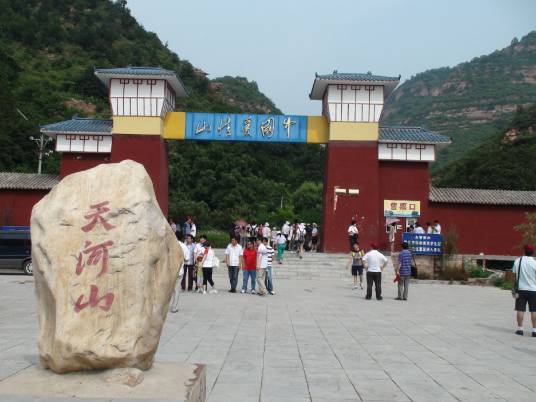 天河山距邢臺(tái)市區(qū)50公里,遠(yuǎn)離都市喧囂,這里奇峰林立,峽谷幽峻,植被豐茂,林木蔥郁;群瀑飛雪,清泉鳴箏,水源豐沛,是著名的“太行水鄉(xiāng)”;松濤陣陣,牛羊成群,又稱“云頂草原”。早在新石器時(shí)代,天河山地區(qū)就有人類居住?谷諔(zhàn)爭(zhēng)時(shí)期,天河山是八路軍主要根據(jù)地之一。129師醫(yī)院,冀南銀行(中國(guó)人民銀行前身)等革命遺址,保存完好。