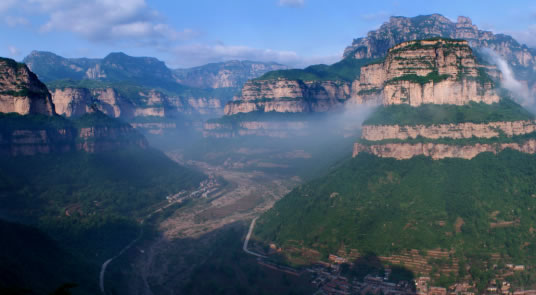 太行大峽谷境內(nèi)斷崖高起,群峰崢嶸,臺(tái)壁交錯(cuò),蒼溪水湍,流瀑四掛,是“北雄風(fēng)光”的典型代表。核心景區(qū)包括:泉潭疊瀑桃花谷、百里畫廊太行天路、太行之魂王相巖、原始生態(tài)峽谷漂流、人間仙境仙霞谷等。