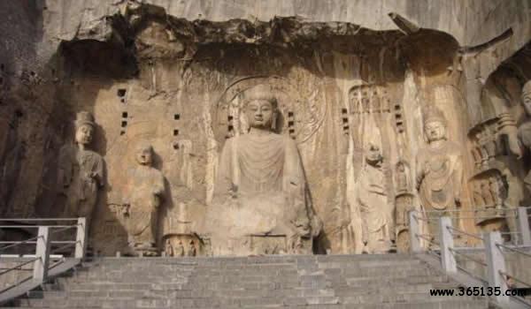 龍門:位于洛陽市洛龍區(qū)龍門鎮(zhèn)伊河兩岸。這里“兩山相對,望而若闕。伊河歷其間北流”(水經(jīng)注)所以古 稱伊闕。伊河兩岸的龍門山和香山,石壁峭立,空缺如門,由于處在隋、唐帝都之南故叫龍門。龍門滿山翠柏,瀑布飛泉,長橋臥空,伊水碧流,尤以龕窟雕飾著稱于世。自古以來,“龍門山色”被譽(yù)為“洛陽八大景”之首。龍門石窟開始營造于北魏孝文帝太和十九年。歷經(jīng)東魏和西魏,北齊和北周,以及隋、唐連續(xù)營造達(dá)四百多年之久。以后,五代、北宋、清均有雕造,但為數(shù)甚少。據(jù)龍門文物保管所統(tǒng)計兩山現(xiàn)存窟龕二千一百多個,佛塔四十多座,大小造像十萬余尊,其中最大的高17.14米,而最小的僅有2厘米。龍門石窟規(guī)模宏大,分布于伊河兩岸懸崖峭壁之上的潛溪寺、賓陽北洞、賓陽中洞、奉先寺、萬佛洞、蓮花洞、藥方洞、古陽洞、賓陽南洞、大萬伍佛洞、擂鼓臺三洞、伊闕佛龕之碑、龍門二十品,總計長達(dá)一千多米,內(nèi)容豐富多彩,雕藝精美而超凡。有史以來,它與敦煌石窟、云岡石窟,并稱為我國三大石刻藝術(shù)寶庫。一九六一年國務(wù)院確定龍門石窟為全國重點文物保護(hù)單位。