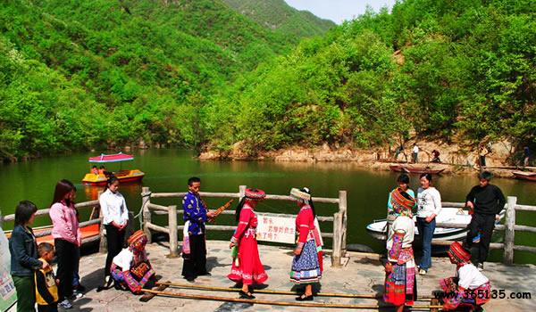 畫眉谷生態(tài)游覽區(qū):位于河南省魯山縣堯山鎮(zhèn)四道河村。距魯山縣城60公里,311國道穿村而過,位置優(yōu)越、交通便利。畫眉谷因有眾多畫眉鳥在此棲息繁衍而得名。景區(qū)中,奇峰、怪石、清溪 、碧潭、幽峽、秀瀑、石洞、湖面、云海、紅葉、山花、野果、中藥材、珍禽異獸,原始森林,構(gòu)成了完整的風景體系。各類景點100 余處,植被覆蓋率達95%。景區(qū)中有碧潭成串、基巖光滑,跌水歡歌的盤龍谷;碧波蕩漾,山清水秀,被譽為“袖珍三峽”的杜鵑湖;造型奇特、山峻澗深。景區(qū)中還有巧奪天工、如神來之筆的駱駝峰、仙掌峰、二蹬崖、東、西光石腦、老虎石、雞冠石、金龜、石猴、石人、天井、藥王洞、求生洞、紅軍洞、水簾洞、銀洞等。置身畫眉谷中,時時空氣清新,處處鳥語花香,滿山風景如畫,四季風光各異。春季,滿山吐綠染翠,百花競相開放,杜鵑如血如火,形成花的海洋;盛夏,飛瀑高懸,流水潺潺,“靈山多秀色,空水共氤氳”,空氣涼爽宜人;金秋,漫山紅葉似火,如花團錦簇,多姿多彩,野果掛滿枝頭,芳香誘人;隆冬,銀裝素裹,冰瀑、冰掛、冰河、雪凇、霧凇如冰雕玉砌,玲瓏剔透,又是一 道靚麗的風景!