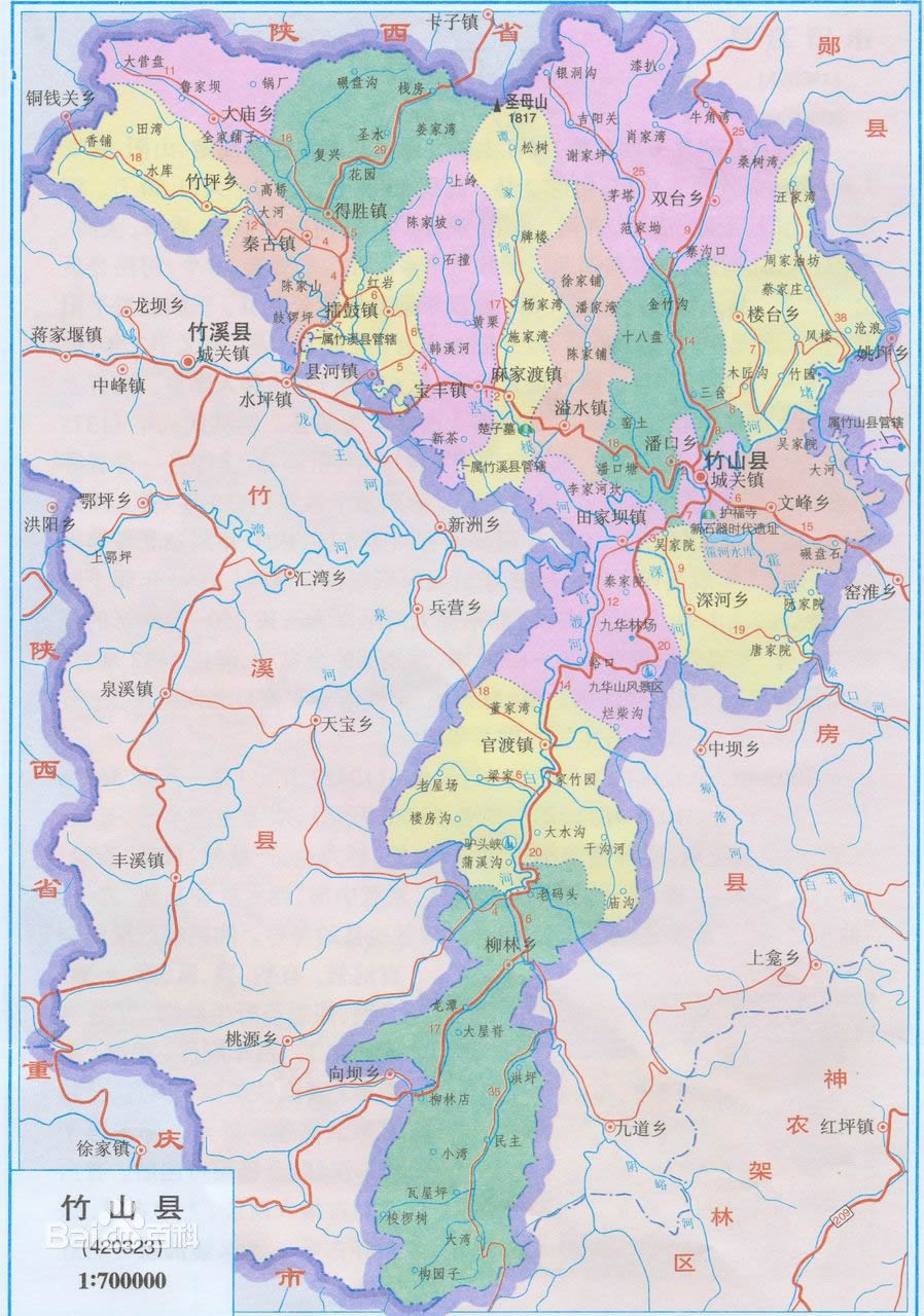 竹山縣行政區(qū)劃圖