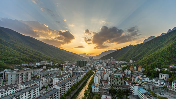 (1)地質(zhì)構(gòu)造型:主要有山地地貌、喀斯特(巖溶)地貌、冰川地貌,造成境內(nèi)河谷深切,溝壑縱橫。
