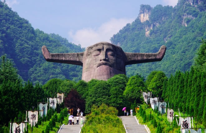 2002年通過(guò)國(guó)家質(zhì)量ISO9001和ISO 14000體系認(rèn)證,被評(píng)為國(guó)家4A級(jí)景區(qū),建成于1997年,是神農(nóng)架一個(gè)自然和人文相結(jié)合的景區(qū)。景區(qū)有特色地分為四個(gè)部分:古老植物園、千年杉王、神農(nóng)祭壇、購(gòu)物長(zhǎng)廊。祭壇內(nèi)神農(nóng)塑像高大雄偉,莊嚴(yán)肅穆,雙目微閉,似乎在洞察世間萬(wàn)物。它以大地為身軀,頭像高21米,象征中華民族在21世紀(jì)蒸蒸日上,寬35米,與它的高加起來(lái)共56米,象征著56個(gè)民族的大團(tuán)結(jié)。祭壇外圍的五色石代表著五行,即金、木、水、火、土,內(nèi)方外圓,即有天圓地方之意。祭壇的兩側(cè)用八組壁畫(huà)記錄著遠(yuǎn)古神農(nóng)氏的功德,即降牛以耕、焦尾五弦、積麻衣葛、陶石木具、原始農(nóng)耕、日中為市、穿井灌溉。八組壁畫(huà)以藝術(shù)的手法敘述了神農(nóng)氏的豐功偉業(yè),表達(dá)了子孫們的無(wú)限追戀。