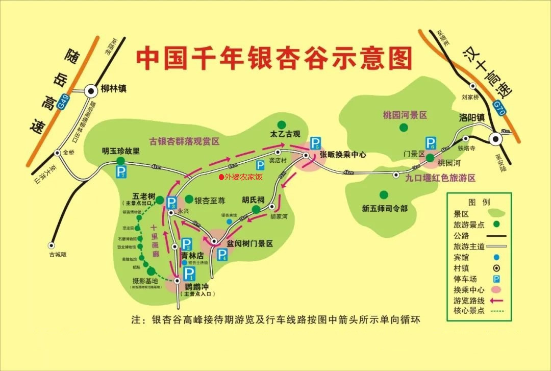 b.從隨州做汽車到洛陽(yáng)鎮(zhèn),再?gòu)穆尻?yáng)鎮(zhèn)做到銀杏谷的私人面包車,洛陽(yáng)鎮(zhèn)到銀杏谷11公里,上午有班車。