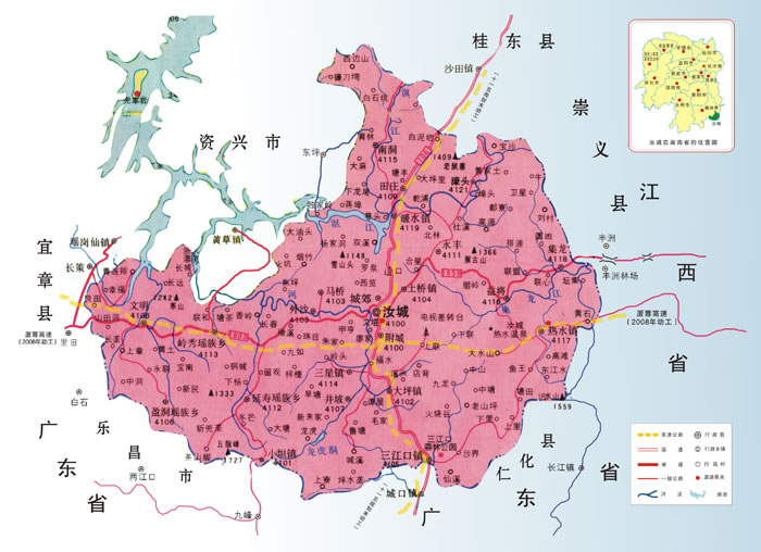 汝城縣轄8個(gè)鎮(zhèn)、12個(gè)鄉(xiāng)、3個(gè)民族鄉(xiāng):