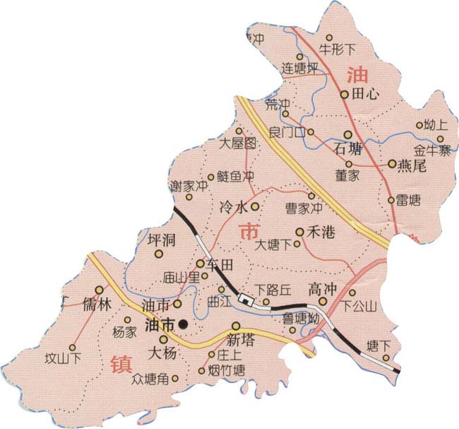 油市鎮(zhèn)行政區(qū)劃圖 油市鎮(zhèn)位于永興縣西部,東與湘陰渡鎮(zhèn)交界,海拔高度:123米。西與高亭、洋塘鄉(xiāng)毗鄰,北與復(fù)和鄉(xiāng)相連,南與蘇仙區(qū)廖王坪鄉(xiāng)接壤。 油市鎮(zhèn)下轄儒林、大揚(yáng)、油市、坪洞、車田、冷水、新塔、高沖、禾巷、石塘、田心、燕尾12個(gè)行政村和1個(gè)居委會(huì),人口29021人,總面積為42.6平方公里。京廣鐵路、京珠高速、107國(guó)道、S212省道貫穿全鎮(zhèn),交通十分便利。 |