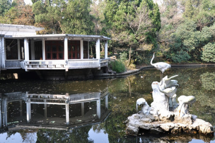 逸響亭位于景區(qū)杜鵑山下,為八方單檐琉璃構(gòu)筑。柱聯(lián)有“繞亭綠樹生新籟;隔葉黃鸝共好音!惫蕿楸姸鄻I(yè)余戲曲愛好者所雅集,擊板行腔,遙吟俯暢,逸興遄飛,其樂融融。