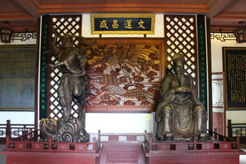 文昌帝君、魁星像陳列展示廳位于天心閣主閣一樓,正中央供奉著“文昌帝君、魁星神像”,是保長沙文運(yùn)昌盛之舉。