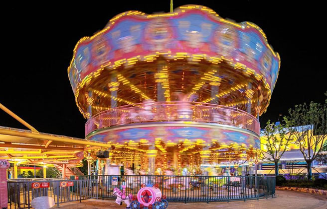 旋轉(zhuǎn)木馬是吃可愛筑成的,馬卡龍色系的木馬旋轉(zhuǎn)跳躍,無數(shù)老夫的少女心奔騰而出。雙層轉(zhuǎn)馬的豪華配置,星星點點的螢光,奶油蛋糕質(zhì)感的外觀,偶像劇預(yù)定。